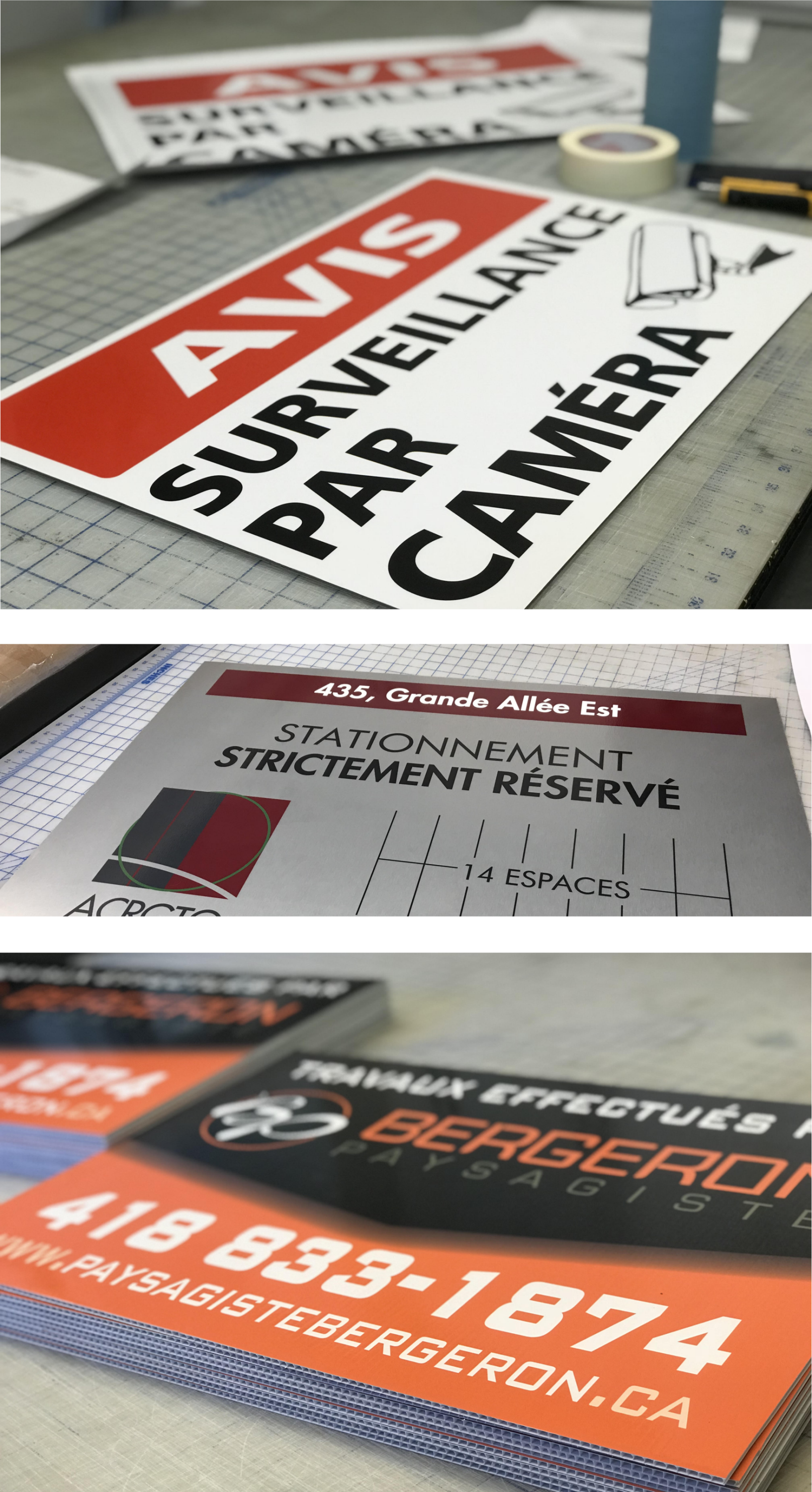 Que vous ayez besoin d'affiches permanentes en aluminium composite ou en acrylique, ou d'affiches temporaires comme celles en Coroplast, nous avons les matériaux et l'expertise nécessaires pour répondre à toutes vos exigences.
