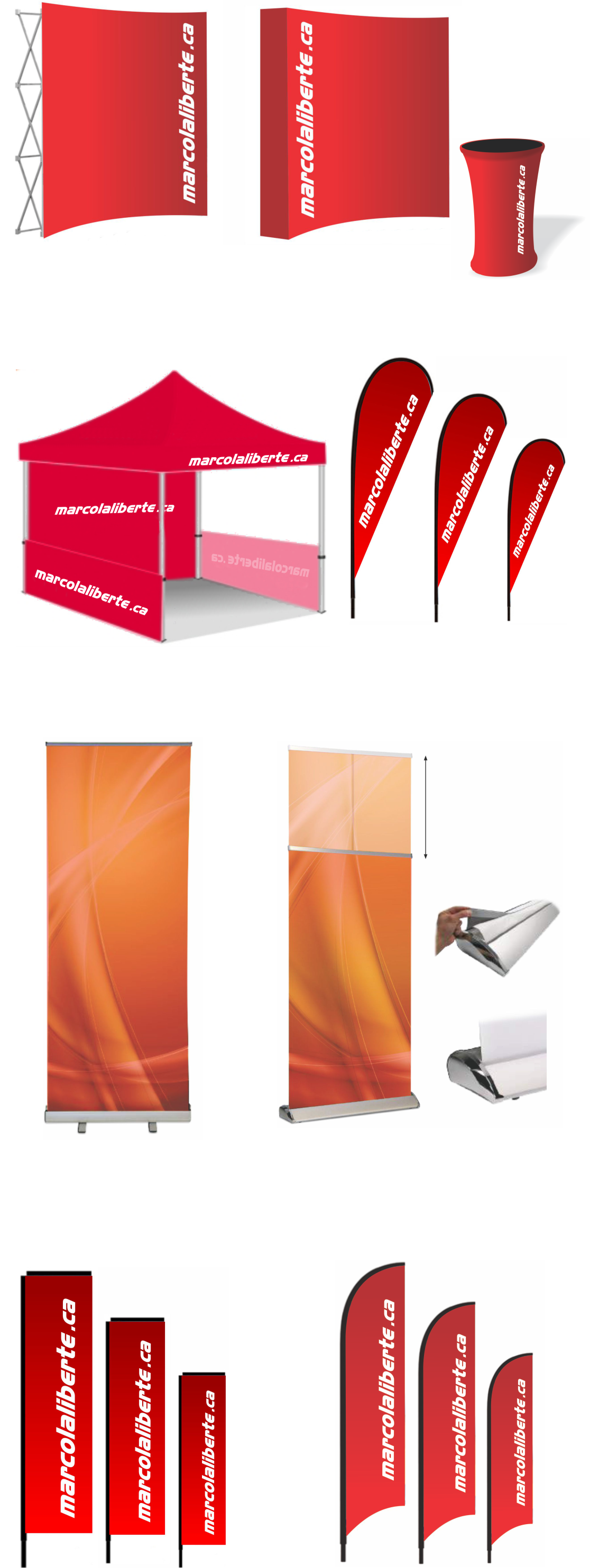 Chapiteaux personnalisés : Solides et résistants, nos chapiteaux sont conçus pour offrir une protection tout en mettant en valeur votre logo ou message. Parfaits pour les événements en plein air, ils sont faciles à monter et garantissent une présence professionnelle.